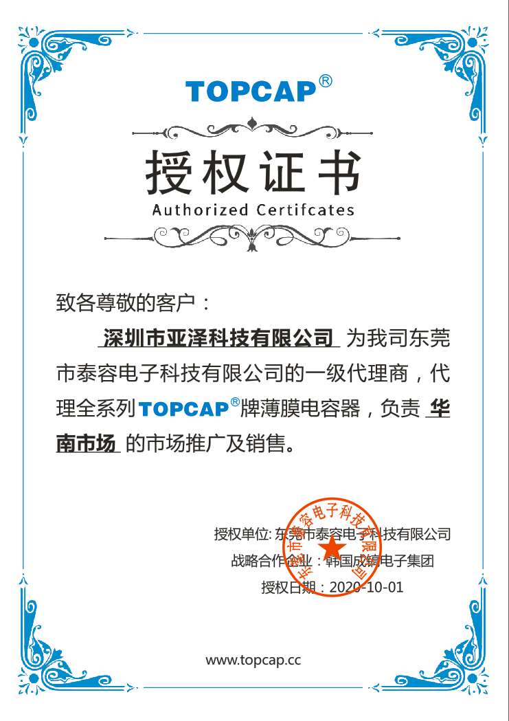 日本黑金剛(NIPPON CHEMI-CON)電容、韓國三瑩(SAMYOUNG)電容、東陽光(HEC)電容、凱美(KAMCAP)超級電容、成鎬薄膜電容、泰容薄膜電容、貝特保險管、大毅電阻、天二特殊電阻、CROWN散熱風(fēng)扇等多家國內(nèi)外知名品牌一級代理及華南區(qū)域總代理授權(quán)。